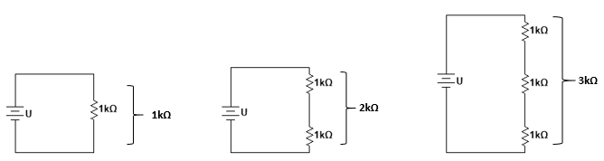 Figuur 4-6 : Hoe meer weerstanden in serie, hoe groter de totale weerstandswaarde