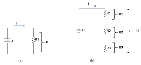 Figuur 4-7 : De totale weerstandswaarde in een serieschakeling is gelijk aan de som van de weerstanden in serie